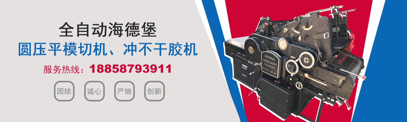 瑞安市恒柯機械廠(www.wzhkjx_com.myqsa.cn)是國內專業制造銷售全自動模切機,全自動燙金機,圓壓平模切機,圓壓平燙金機,滾筒燙金機,沖不干膠機,海德堡凸印機.銷售的產品系列規格齊全,產品具有速度快,壓力均勻,套印準確等特點。